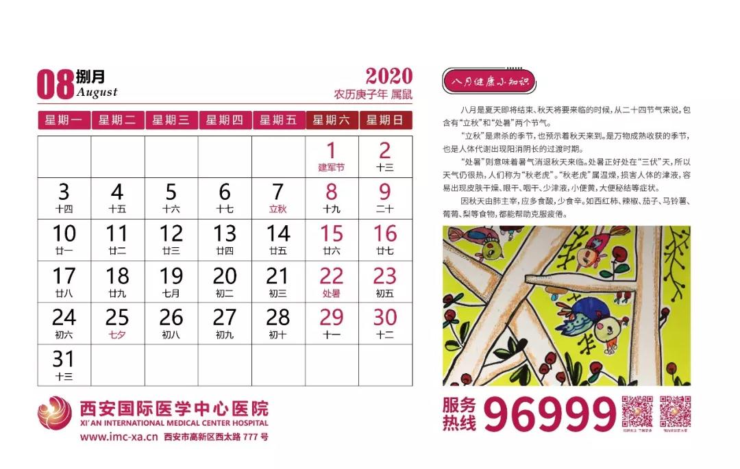 平平安安,健康每一天——2020年掛歷
