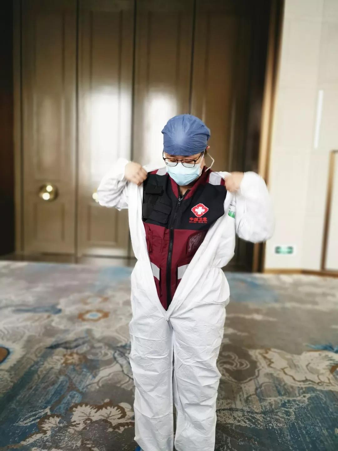 晚上十點(diǎn)多,大家仍然在反復(fù)溫習(xí)筆記,不斷練習(xí)穿脫防護(hù)服。穿防護(hù)服:十五個(gè)左右的步驟;脫防護(hù)服:二十多個(gè)步驟。每一個(gè)重要動作要練習(xí)上百次,穿脫幾次后,往往汗流浹背。