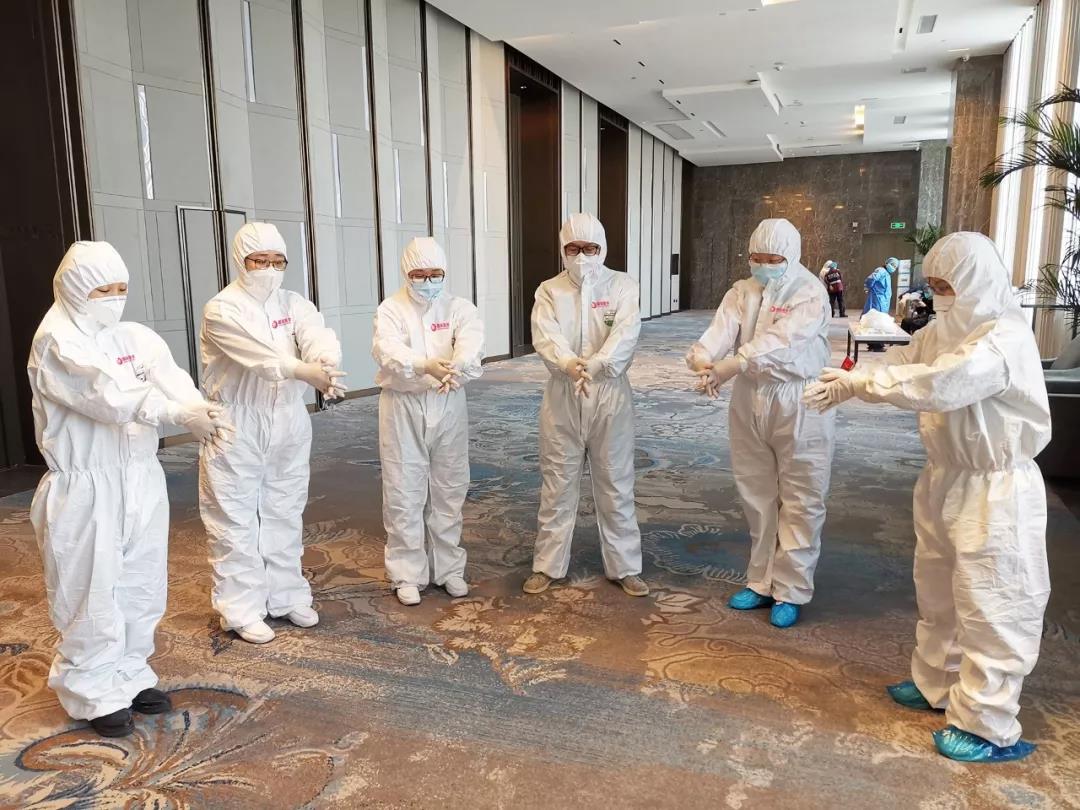 駐守在抗擊疫情第一線,6名護(hù)理人員彼此照顧,彼此鼓勁。張欣給每個(gè)人準(zhǔn)備了垃圾袋;申歡歡時(shí)常提醒大家,要注意洗手,做好個(gè)人的防護(hù);商江麗把自己帶的防護(hù)用品分給大家,幫忙進(jìn)行房間的消毒;馬喬璐、李晶樓上樓下奔波,幫同事們領(lǐng)餐……