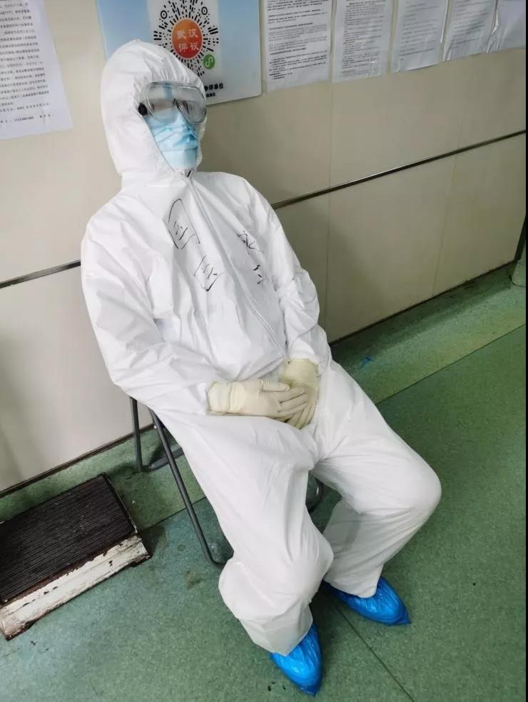 正月十五的夜,月兒很圓。實(shí)在太累了,得“秒”睡會(huì)兒。西安國(guó)際醫(yī)學(xué)中心醫(yī)院赴武漢醫(yī)療隊(duì)隊(duì)員正奮戰(zhàn)在武漢第八醫(yī)院的一間間病房里。隊(duì)員劉永平醫(yī)生已連續(xù)奮戰(zhàn)了三個(gè)多小時(shí)了,實(shí)在太累了,坐在凳子上都睡著了……這一幕正好被旁邊的同事拍到了。進(jìn)入武漢第八醫(yī)院(卓爾長(zhǎng)江應(yīng)急醫(yī)院)工作,醫(yī)療隊(duì)劉永平醫(yī)生每天穿梭在病房之間,和護(hù)理人員一起查房,詢(xún)問(wèn)患者情況,制定診療方案,這一切場(chǎng)景在醫(yī)院里好像都是稀松平常。唯一不同的是,穿戴全套防護(hù)裝備的他,工作一兩個(gè)小時(shí)就需要停下來(lái),喘口氣,然后再重新投入工作。
