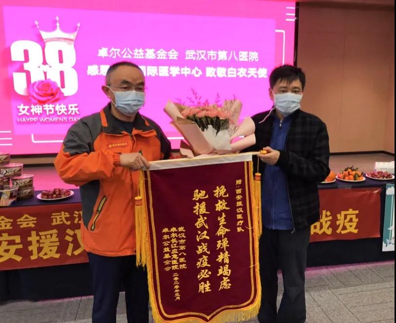 3月8日國際勞動婦女節(jié),武漢市江岸區(qū)副區(qū)長蔣志耕,江岸區(qū)衛(wèi)健局黨委書記、局長童衛(wèi)橋,武漢市第八醫(yī)院黨委書記唐迎春,卓爾公益基金會副理事長方黎等領(lǐng)導(dǎo)前往西安國際醫(yī)學(xué)中心醫(yī)院赴湖北醫(yī)療隊駐地,為“抗疫女神”們送上節(jié)日祝福。醫(yī)療隊隊長楊峰、黨支部書記李斌、專家組成員及隊員代表等出席。會議由江岸區(qū)衛(wèi)健局童衛(wèi)橋書記局長主持。