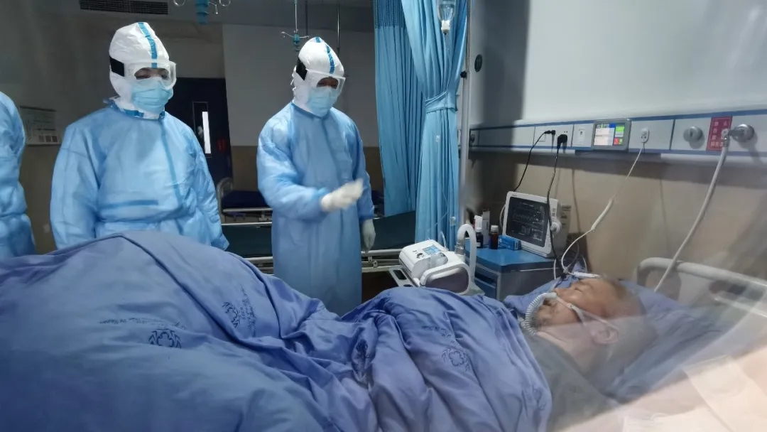 著名呼吸專家吳昌歸教授、心臟病學(xué)專家王海昌教授、著名傳染病學(xué)專家賈戰(zhàn)生教授等查房后共同制定治療方案,調(diào)整用藥。薛妍副院長(zhǎng)、楊宗義主任、倪曉慧總護(hù)士長(zhǎng)等一邊調(diào)整治療方案,一邊鼓勵(lì)患者。高釗醫(yī)生主動(dòng)承擔(dān)起患者的監(jiān)護(hù)任務(wù)。