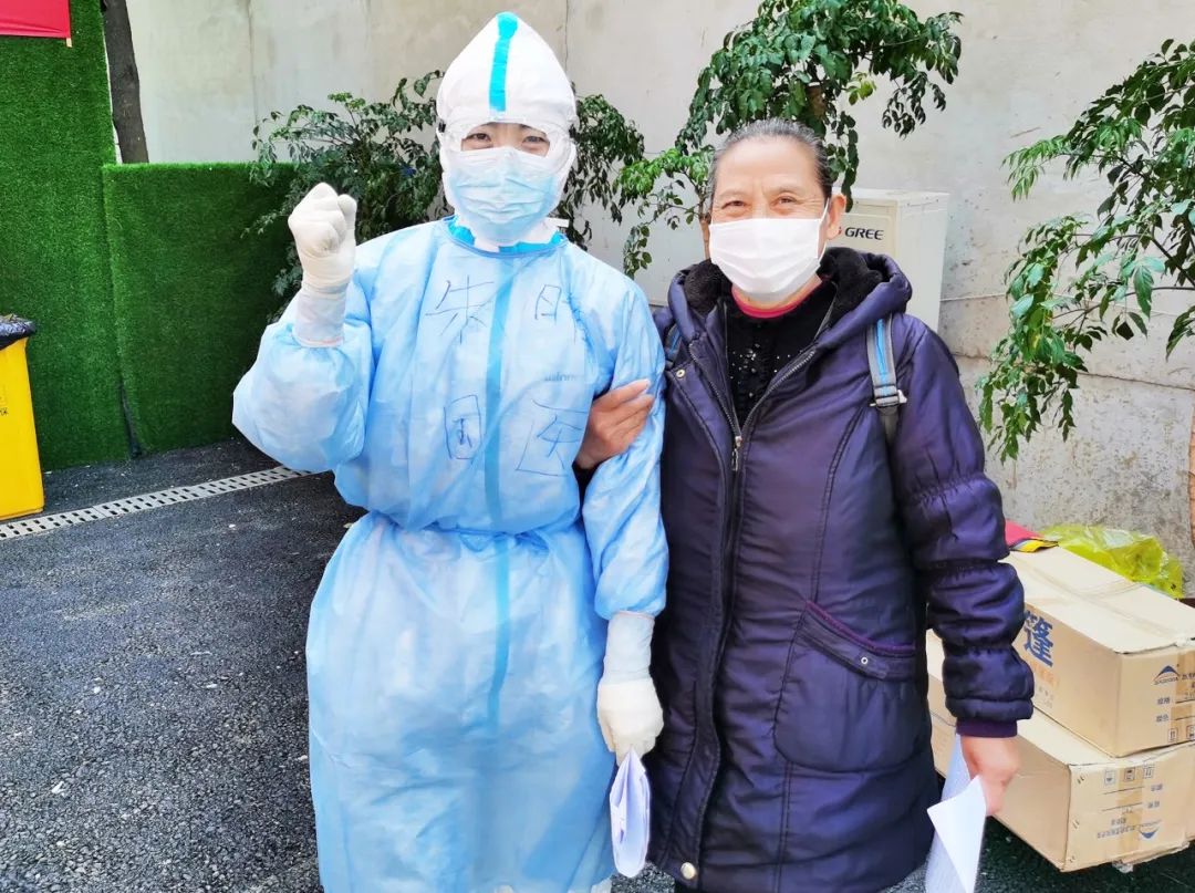 “阿姨你咋還不走呢?”護(hù)士長朱晴看到一位“熟人 ”還站在驛站門口。這位阿姨的老伴兒感染新冠不幸去世,她和兒子都被傳染,從醫(yī)院到康復(fù)驛站后出現(xiàn)了嚴(yán)重應(yīng)激反應(yīng),失眠,哭泣,休息不好,血壓升高,胃口很差。除了關(guān)注阿姨的身體狀況外,朱晴時(shí)常寬慰她,要保重身體和兒子一起回家?!拔乙湍懔魝€(gè)照片,以后一定要去西安看你。當(dāng)面感謝你們醫(yī)療隊(duì)!”阿姨挽著朱晴的胳膊說。