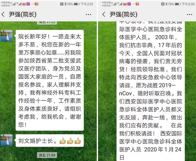 2020年1月24日晚,西安國際醫(yī)學中心醫(yī)院在工作群中發(fā)布了,西安市衛(wèi)健委《關于組派醫(yī)療隊援助湖北應對新型冠狀病毒感染的肺炎疫情的通知》。