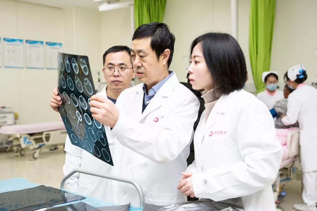 上午9:42,患者從甘肅慶陽出發(fā);10:48,救援直升機順利抵達西安國際醫(yī)學(xué)中心醫(yī)院停機坪?!皝韥韥恚闾е@邊,我來推擔(dān)架,前后左右,一二三......”救援人員迅速將患者運上救護車,送往西安國際醫(yī)學(xué)中心醫(yī)院急救中心。急救中心沈劍主任帶領(lǐng)醫(yī)護團隊立即開啟綠色通道,為患者監(jiān)測各種生命指標,第一時間做了腦部、胸部的CT檢查。