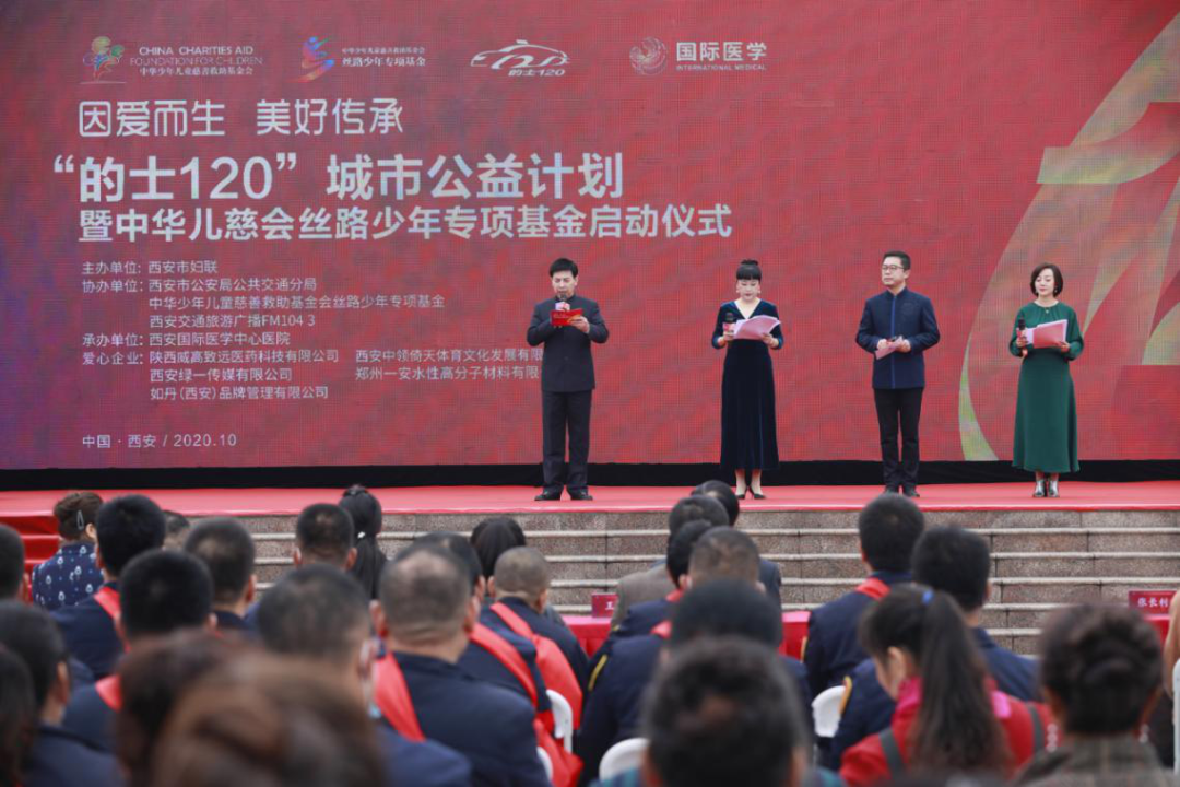 由西安市婦聯(lián)主辦,西安市公安局公共交通分局、中華少年兒童慈善救助基金會絲路少年專項基金以及西安交通旅游廣播FM104.3協(xié)辦,西安國際醫(yī)學中心醫(yī)院承辦“的士120”城市公益計劃暨中華兒慈會絲路少年專項基金啟動儀式在這里隆重舉行。