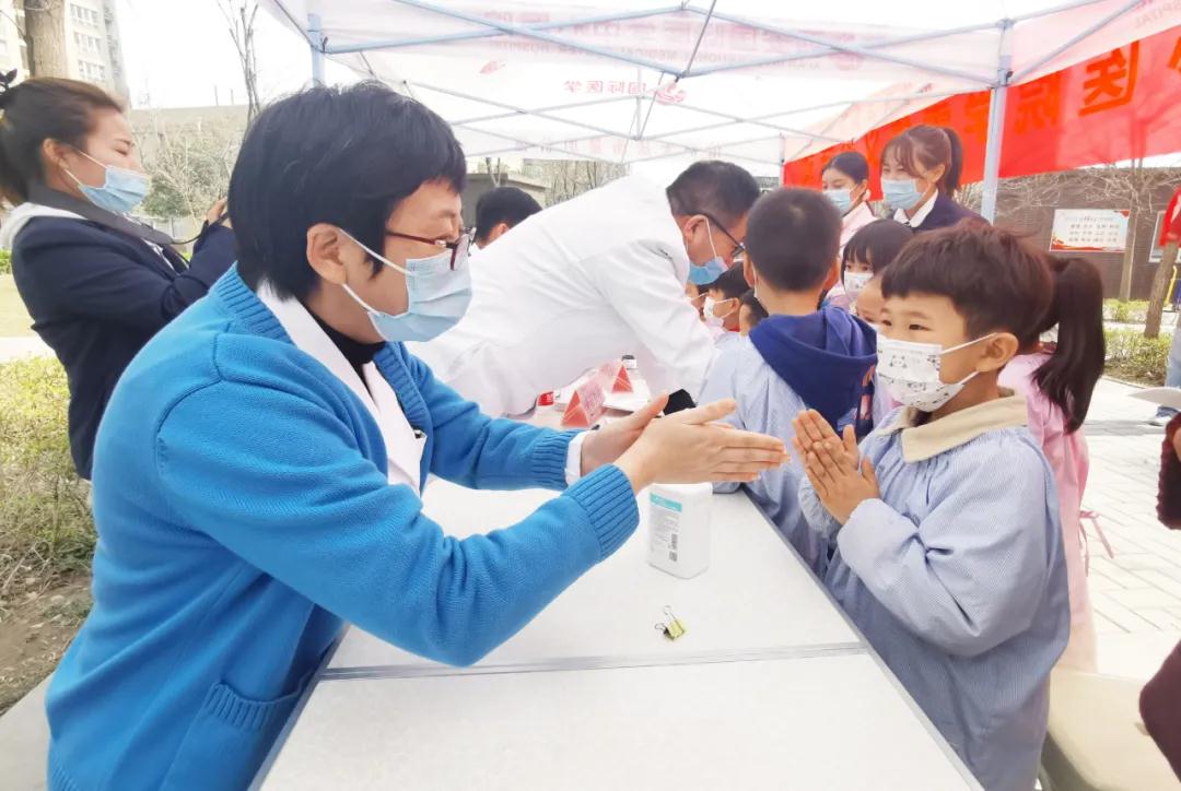 在創(chuàng)匯社區(qū)義診現(xiàn)場,高新第八幼兒園的小朋友們在醫(yī)護(hù)人員的帶領(lǐng)下學(xué)做“洗手操”。醫(yī)生用通俗易懂的語言,詳細(xì)講解了洗手的重要性及如何正確洗手遠(yuǎn)離細(xì)菌等相關(guān)知識,分步驟教會了小朋友們?nèi)绾握_洗手。同時(shí),醫(yī)護(hù)人員還為小朋友們介紹了體檢車的功能及用途,并帶領(lǐng)大家進(jìn)入體檢車參觀。