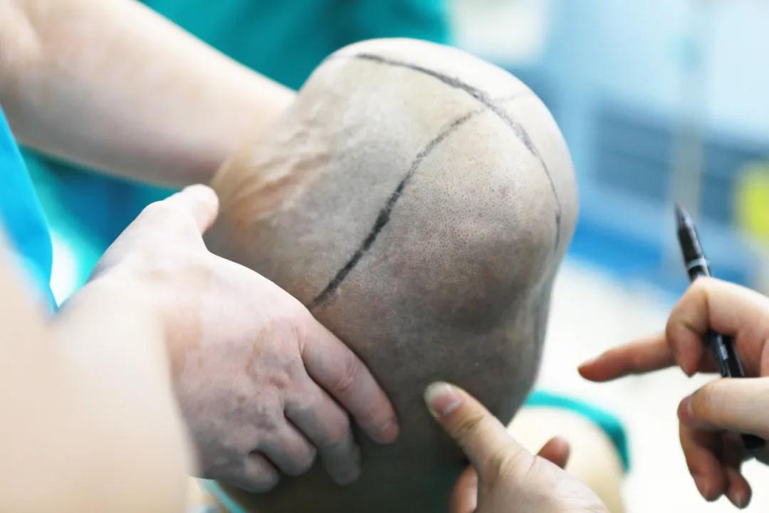 由于患者腫瘤供血非常豐富,異常血管穿插在腫瘤侵蝕的顱骨內(nèi),為保證達(dá)到手術(shù)預(yù)期目的,手術(shù)只能一步步小心前進(jìn),經(jīng)歷17個(gè)小時(shí),輸血達(dá)13000毫升,賀世明主任用耐心、細(xì)心的精準(zhǔn)操作,對(duì)腫瘤進(jìn)行了完全切除。隨后,整形醫(yī)院醫(yī)生對(duì)患者頭部頭皮進(jìn)行了皮瓣設(shè)計(jì)與縫合。