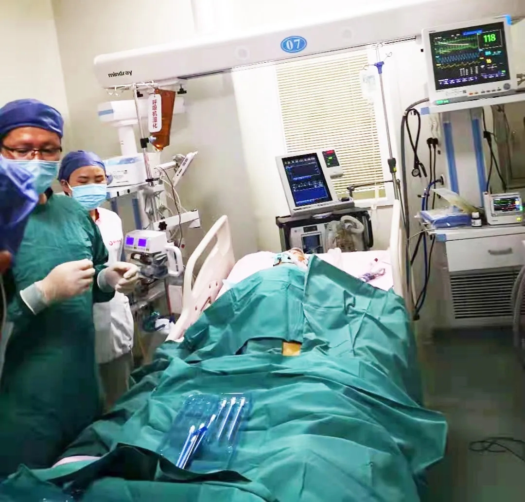 時間就是生命,治療設(shè)備第一時間到位后,胸科醫(yī)院吳昌歸院長、呼吸內(nèi)科重癥監(jiān)護(hù)室陳麗展主任、心外科程亮主任、程維平醫(yī)生等人立刻開始緊張的搶救工作。醫(yī)護(hù)人員一邊進(jìn)行動靜脈置管并連接VV-ECMO的管路,一邊進(jìn)行抗感染、輸血、維持生命體征,吸痰等營養(yǎng)支持治療。直到入院次日下午3點(diǎn)左右,患者病情趨于穩(wěn)定,搶救才告一段落。在醫(yī)護(hù)人員的精心治療下,患者病情逐漸好轉(zhuǎn),13天后成功脫離體外膜肺、停用VV-ECMO,16天后拔除氣管插管,能夠清楚的和人溝通交流,恢復(fù)情況讓醫(yī)護(hù)興奮,更讓家屬激動不已。