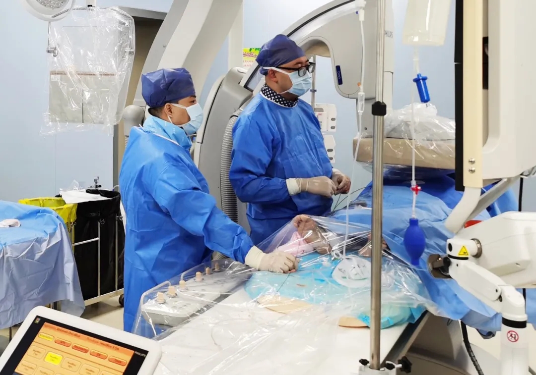 入手術(shù)室時(shí),患者神志迷糊,口唇干燥、重度貧血貌,心電監(jiān)護(hù)提示:心率140-160次/分,血壓70/43mmHg,這是失血性休克的表現(xiàn)!白葦快速建立靜脈通道緊急給予輸血,升壓,止血等液,立即給予肝動(dòng)脈造影,術(shù)中發(fā)現(xiàn)肝左葉疑似腫瘤病灶、病灶周圍血管分支有造影劑外溢,考慮血管破裂出血,迅速給予栓塞微球進(jìn)行肝動(dòng)脈栓塞。整個(gè)手術(shù)過程不足20分鐘,術(shù)后即刻患者心率降至100-110次/分、血壓升至90/60mmHg。