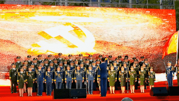 “我是一個(gè)兵,來自老百姓……”合唱將《我是一個(gè)兵》《沒有共產(chǎn)黨就沒有新中國》巧妙編排在一起?!段沂且粋€(gè)兵》鏗鏘有力,氣勢高亢,展示了老兵們永不褪色的軍人風(fēng)采;隨著中國人民解放軍進(jìn)行曲響起,三名軍旗手,邁著堅(jiān)實(shí)的步伐走上舞臺(tái);“沒有共產(chǎn)黨就沒有新中國,沒有共產(chǎn)黨就沒有新中國……”激情高昂的歌聲表達(dá)出每一個(gè)人的心聲,合唱融入了京劇唱法,男聲鏗鏘有力,氣勢十足,女聲委婉細(xì)膩,優(yōu)美動(dòng)聽,極富有感染力,將整場氣氛推向高潮,贏得全場陣陣掌聲。