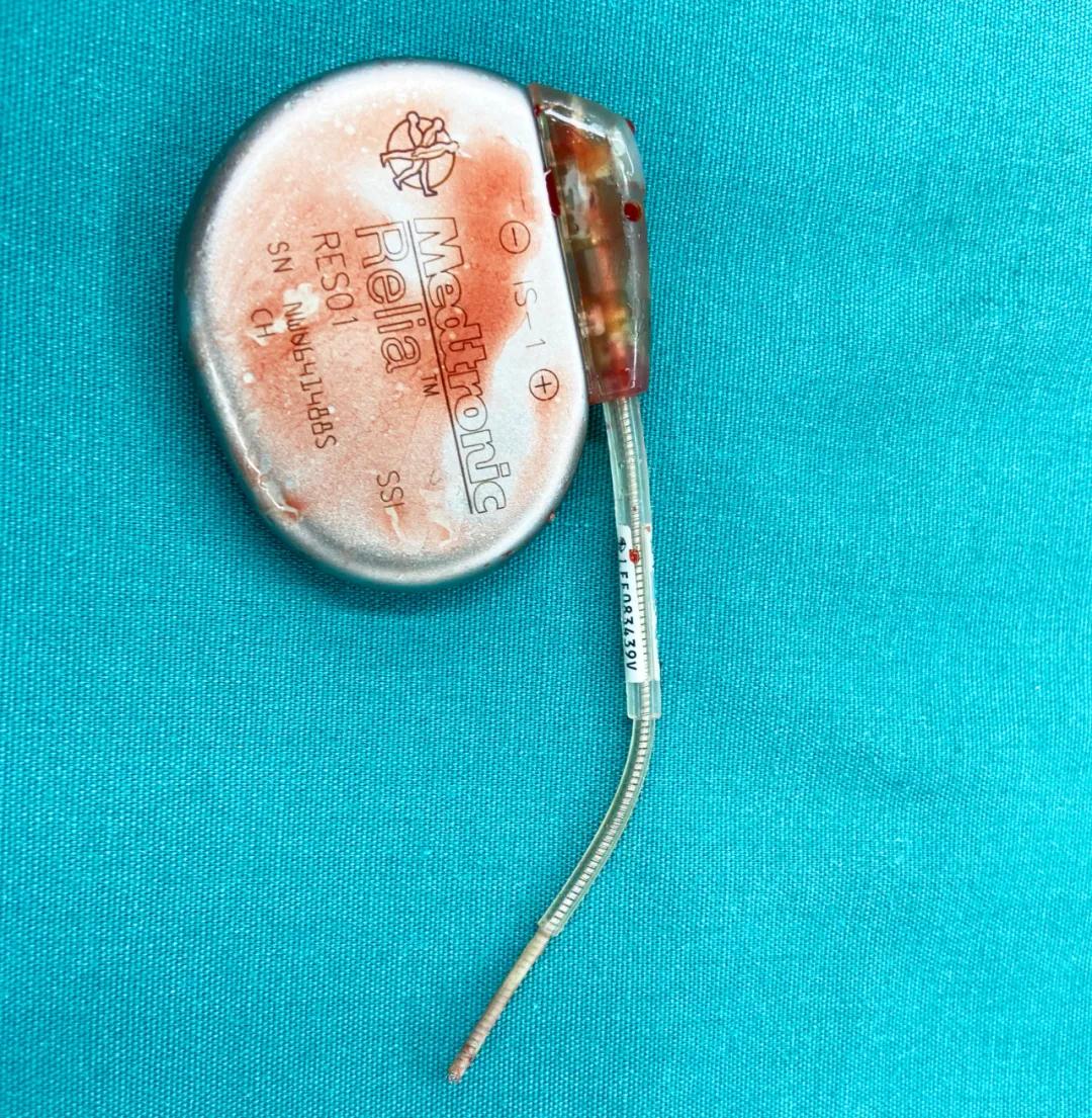 18歲的甜葵迎來了她人生中的第二次開胸體外循環(huán)手術(shù)。股動靜脈插管進行體外循環(huán)轉(zhuǎn)流保駕,搖擺鋸劈開胸骨,游離粘連心包,游離上下腔靜脈,插上腔直角插管,阻斷上下腔。切開右心房,可見起搏器纏繞在右心房內(nèi),導線從右心耳處穿出,進入心包腔,沿右側(cè)心包到達右前心包與膈肌交界,穿出心包腔,進入腹部皮下。張金洲副院長小心翼翼地在導線出右房處剪斷,一點點分離將電極從右心室心內(nèi)膜拔出。心包外導線和隧道一并切除至膈肌處,檢查右心室內(nèi)膜光滑,無破損,停止體外循環(huán)。雙氧水、碘伏、抗生素、生理鹽水反復(fù)沖洗起搏器囊袋和竇道,逐層縫合皮下組織和皮膚,手術(shù)順利完成。術(shù)后第二天拔除氣管插管,次日搬回普通病房。甜葵于6月10日轉(zhuǎn)至心臟內(nèi)科一病區(qū),11日下午張衛(wèi)澤副院長為其安置永久起搏器,手術(shù)順利。