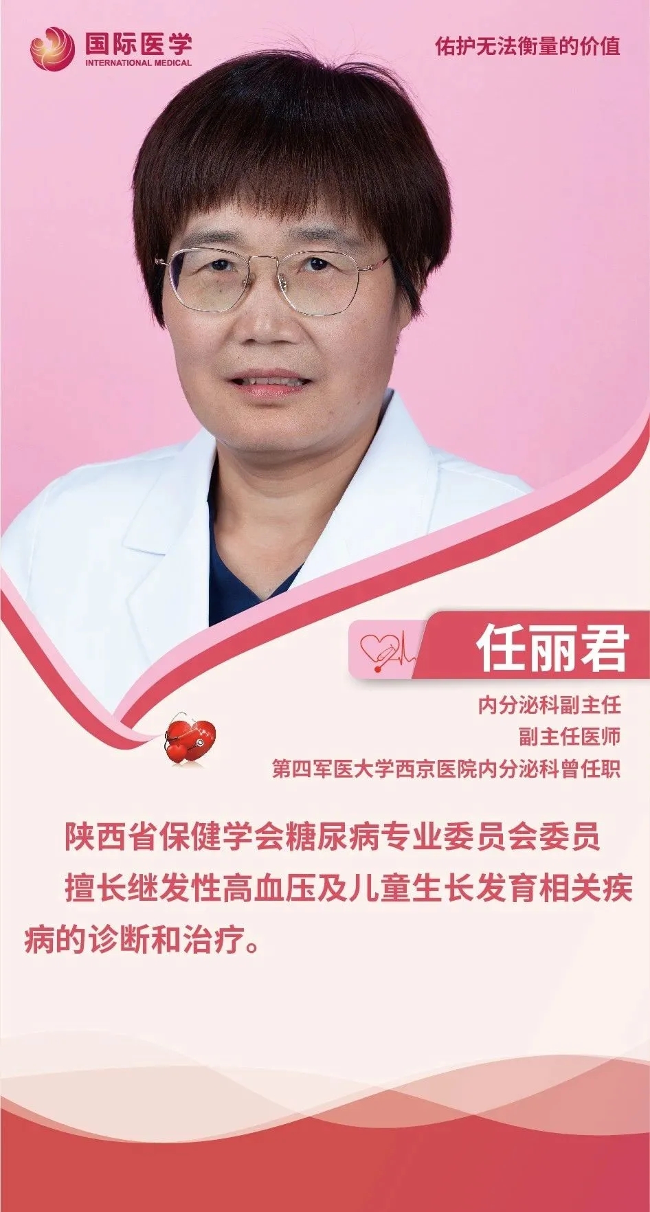 生命之重,重于千金,醫(yī)生是捍衛(wèi)生命的守護(hù)神,救死扶傷是醫(yī)生畢生追求的信念。從披上白衣成為一名內(nèi)分泌科醫(yī)生的那一刻起,“對(duì)生命負(fù)責(zé)”這一響亮的口號(hào),就成為她工作的源泉和動(dòng)力。她的肩上就擔(dān)負(fù)起“責(zé)任”和“挑戰(zhàn)”兩項(xiàng)重任。在她看來,患者的需求就是醫(yī)者努力的方向。她就是西安國(guó)際醫(yī)學(xué)中心醫(yī)院內(nèi)分泌科副主任任麗君。