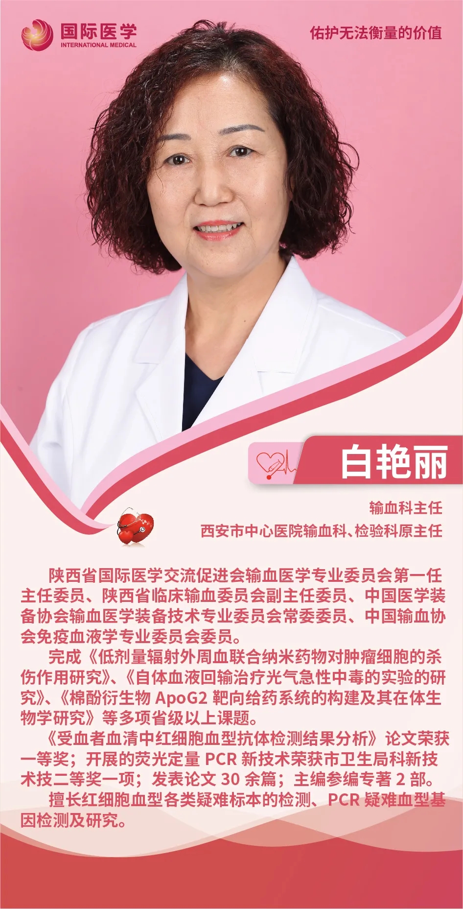 她就是西安國(guó)際醫(yī)學(xué)中心醫(yī)院輸血科主任——白艷麗。