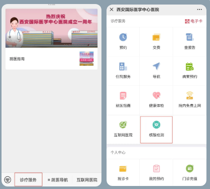 ◆核酸檢測(cè)結(jié)果可在西安國(guó)際醫(yī)學(xué)中心醫(yī)院服務(wù)號(hào)——【診療服務(wù)】——【查報(bào)告】中查看,也可在“西安市民一碼通”——【核酸結(jié)果查詢】中查看。