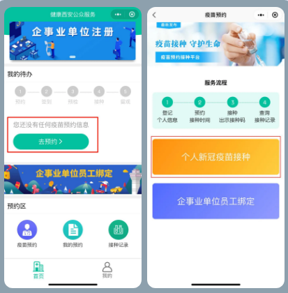西安國(guó)際醫(yī)學(xué)中心醫(yī)院現(xiàn)面向全民開展新冠疫苗接種服務(wù),通過關(guān)注“健康西安公眾服務(wù)”小程序,手機(jī)操作實(shí)現(xiàn)疫苗預(yù)約。