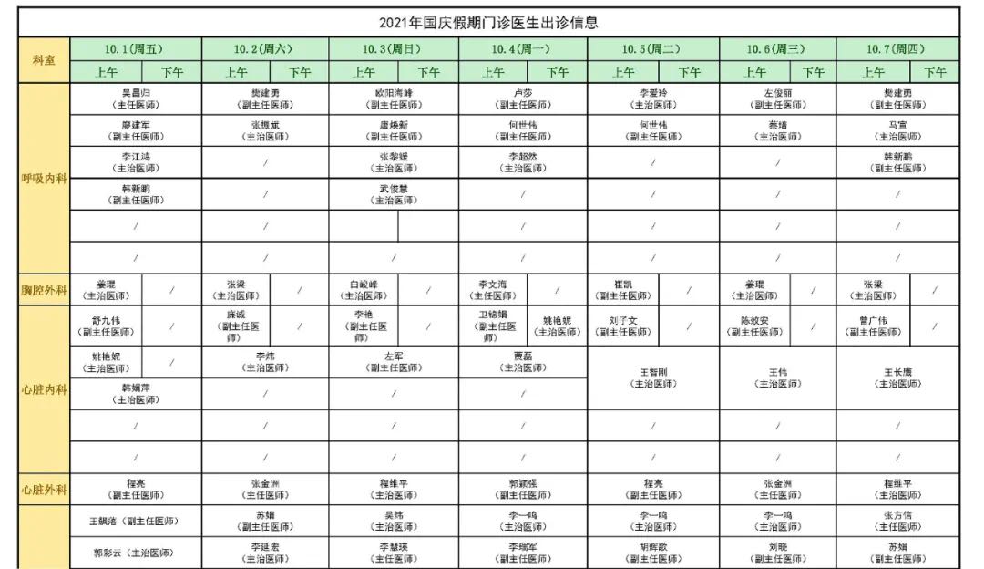 國(guó)慶假期門(mén)診安排表