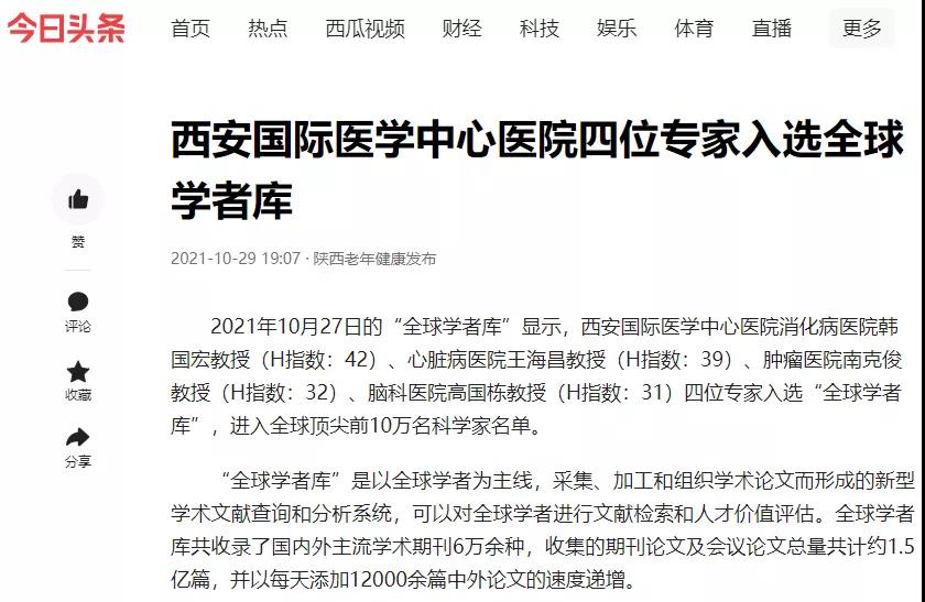 西安國際醫(yī)學(xué)中心醫(yī)院四位專家入選全球?qū)W者庫