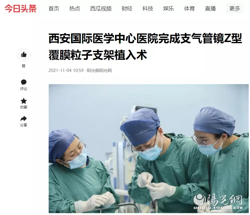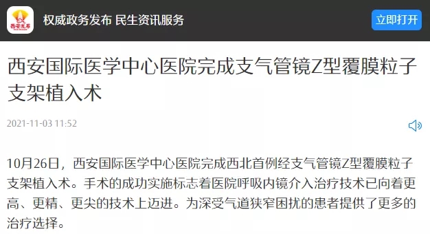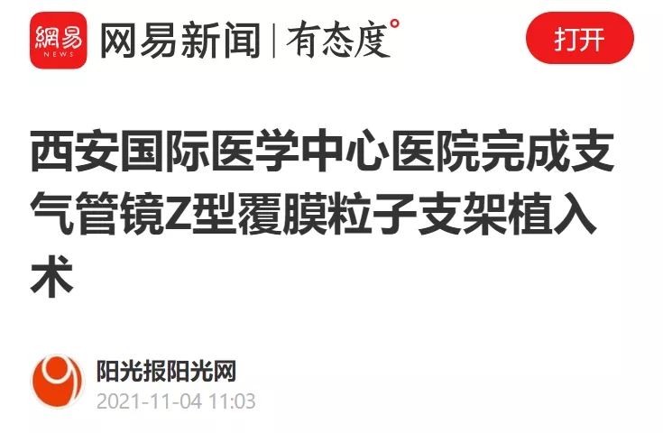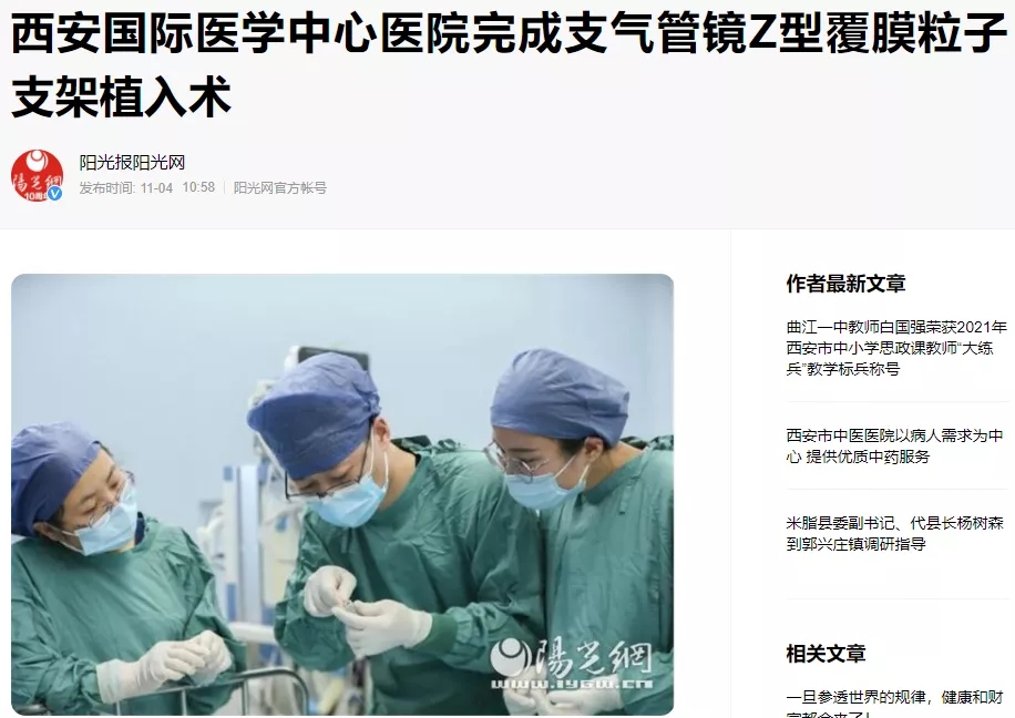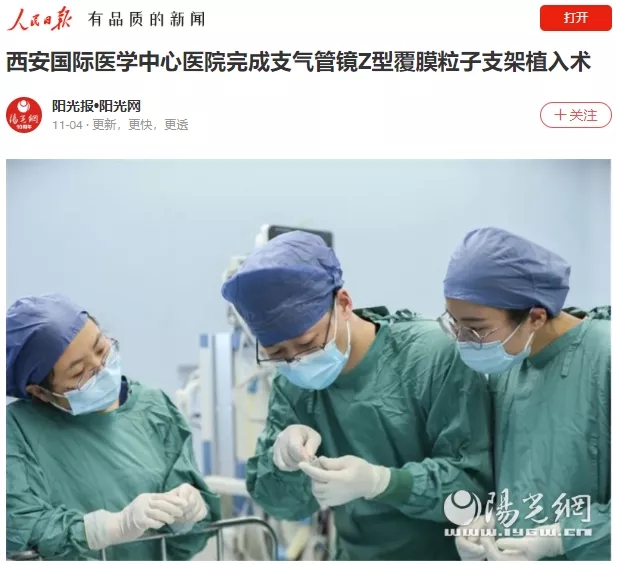 西安國(guó)際醫(yī)學(xué)中心醫(yī)院完成支氣管鏡Z型覆膜粒子支架植入術(shù)