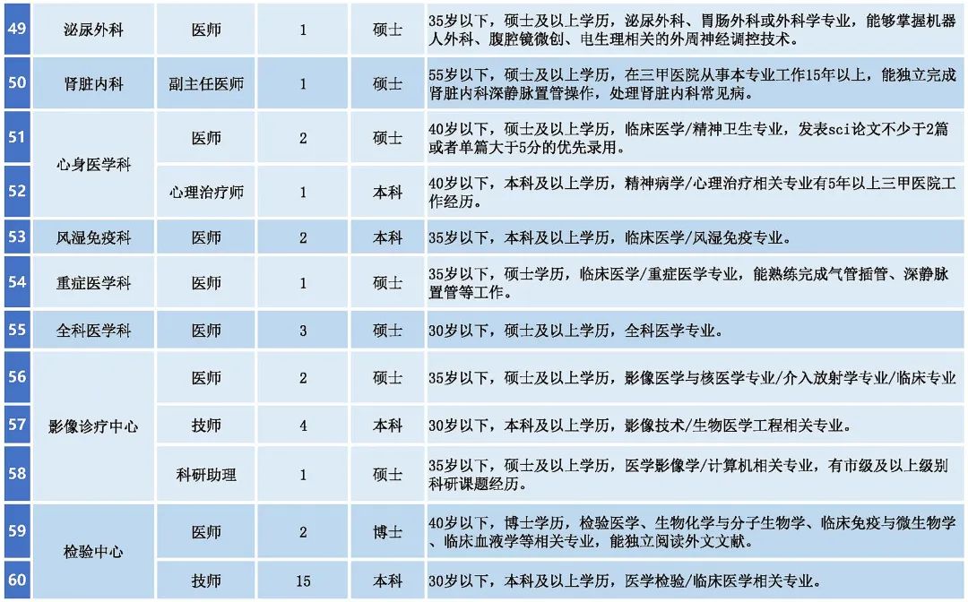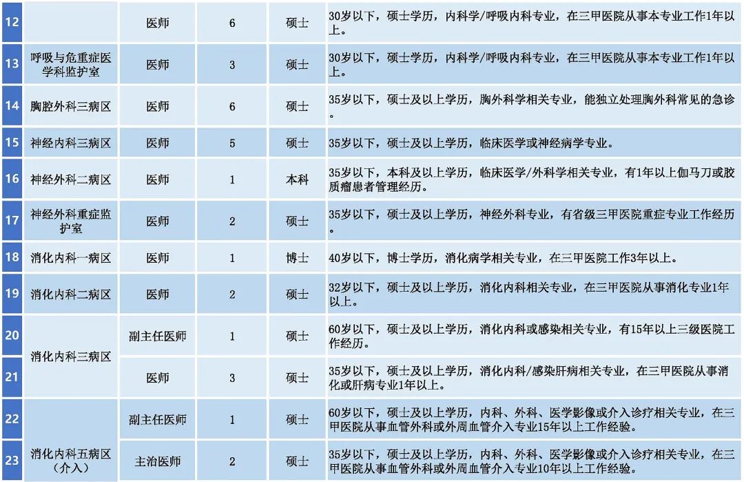 應(yīng)聘者要有相應(yīng)的執(zhí)業(yè)證書和資格證書;應(yīng)聘醫(yī)師崗位者要完成國家住院醫(yī)師規(guī)范化培訓(xùn)。