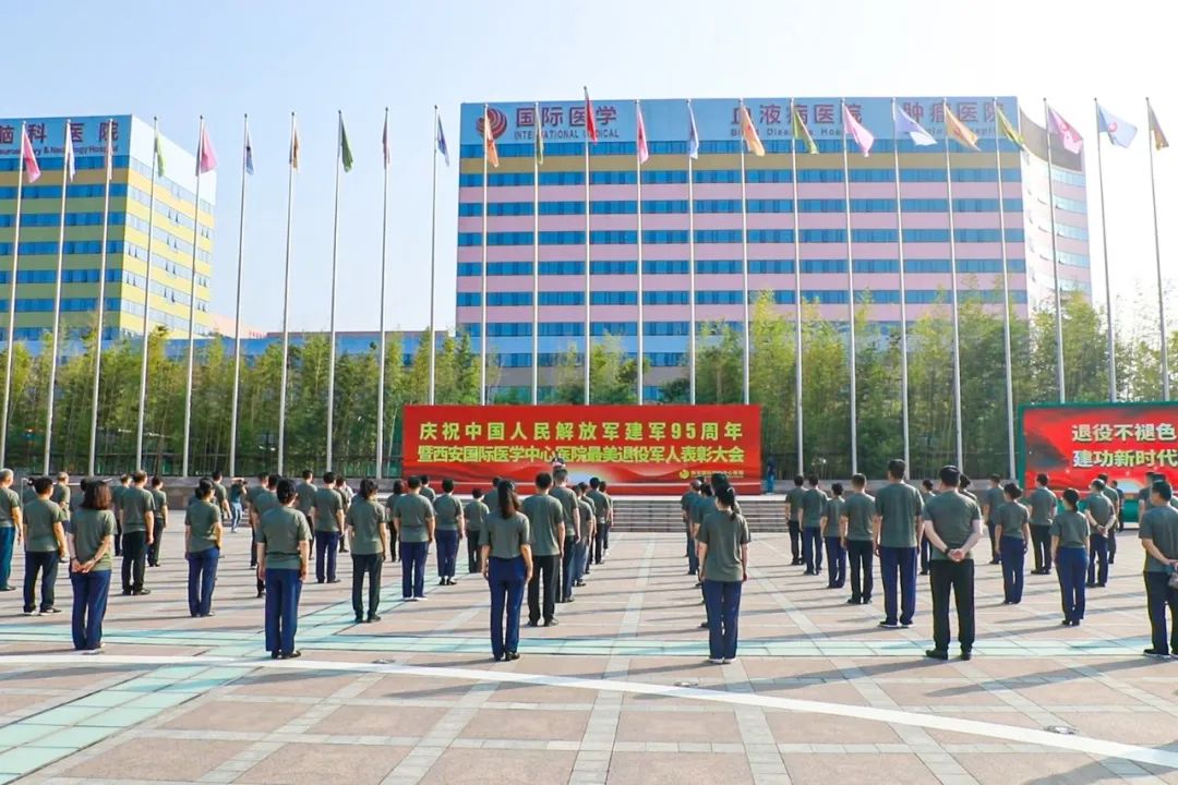 “向前!向前!向前!我們的隊(duì)伍向太陽,腳踏著祖國的大地,背負(fù)著民族的希望,我們是一支不可戰(zhàn)勝的力量!”嘹亮的歌聲響徹天際。8月1日8點(diǎn),迎著清晨第一縷陽光,西安國際醫(yī)學(xué)中心醫(yī)院100余名退役軍人代表整齊列隊(duì),在萬人廣場(chǎng)舉行慶祝建軍95周年暨最美退役軍人表彰大會(huì)。會(huì)議由王志峰總經(jīng)理主持。