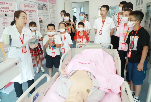 在培訓中心,醫(yī)護人員為小朋友們講解急救知識、心肺檢查及手術科普知識?!叭绻瑢W摔傷、暈倒、停止呼吸怎么辦呢?”醫(yī)生示范,教會大家如何正確地現(xiàn)場救助。