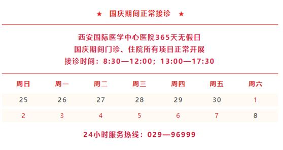 七天小長(zhǎng)假將至,節(jié)假日看病難一直是老百姓最為頭疼的問(wèn)題之一。為了更好地為患者提供優(yōu)質(zhì)的醫(yī)療服務(wù),西安國(guó)際醫(yī)學(xué)中心醫(yī)院國(guó)慶期間門診不停診、手術(shù)不停臺(tái)、住院不影響,為患者健康保駕護(hù)航。