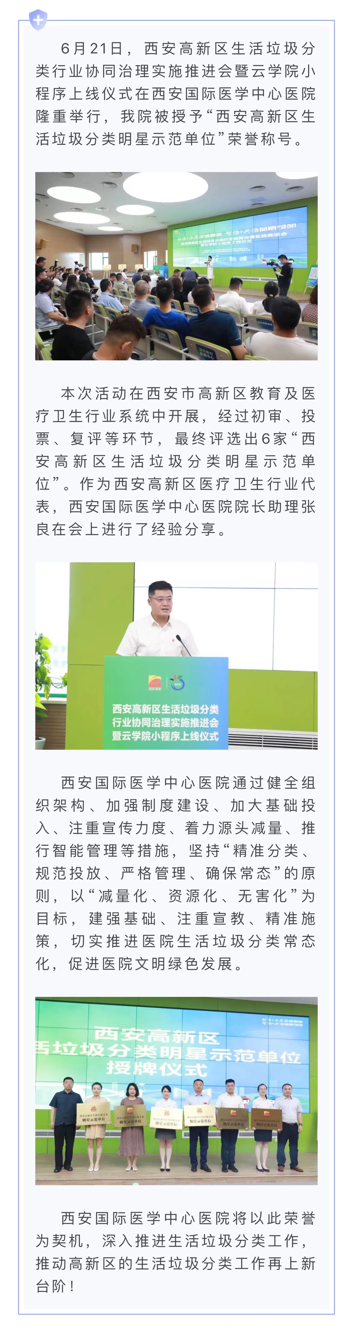 我院被授予“西安高新區(qū)生活垃圾分類明星示范單位”榮譽(yù)稱號(hào)