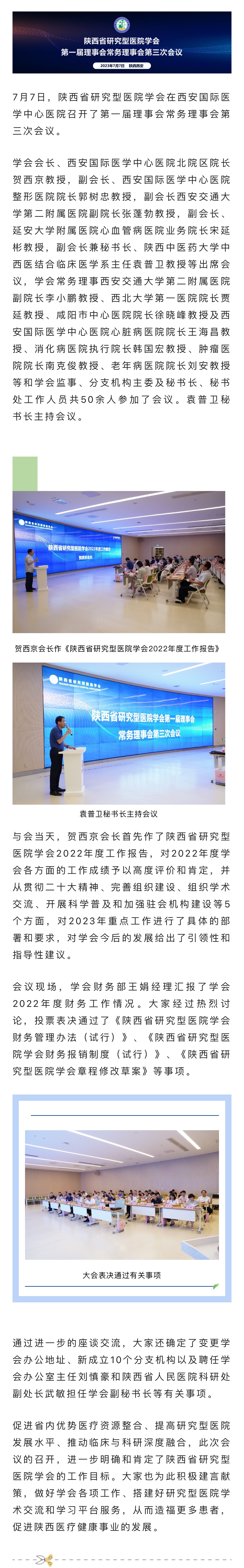 陜西省研究型醫(yī)院學會第一屆理事會第三次會議在我院召開