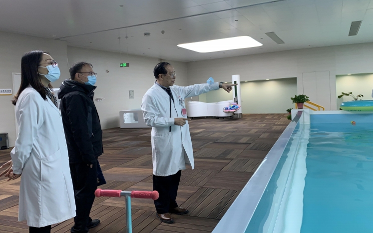 會后,牛部長一行參觀了醫(yī)院成人康復(fù)部的肌骨與臟器康復(fù)治療區(qū)、水療康復(fù)區(qū)、中藥熏蒸室。期間張正湘院長詳細(xì)介紹了我院康復(fù)部的優(yōu)勢科室、先進(jìn)儀器、構(gòu)思設(shè)計及特色醫(yī)療服務(wù)。牛部長一行對我院工傷保險工作所做出的努力和取得的成績給予了高度評價,并對醫(yī)院先進(jìn)的醫(yī)療設(shè)備、溫馨的就醫(yī)環(huán)境、人性化的醫(yī)療服務(wù)贊不絕口。并希望與醫(yī)院加強(qiáng)工傷醫(yī)療康復(fù)的合作意愿,為廣大工傷患者提供更優(yōu)質(zhì)的服務(wù)。