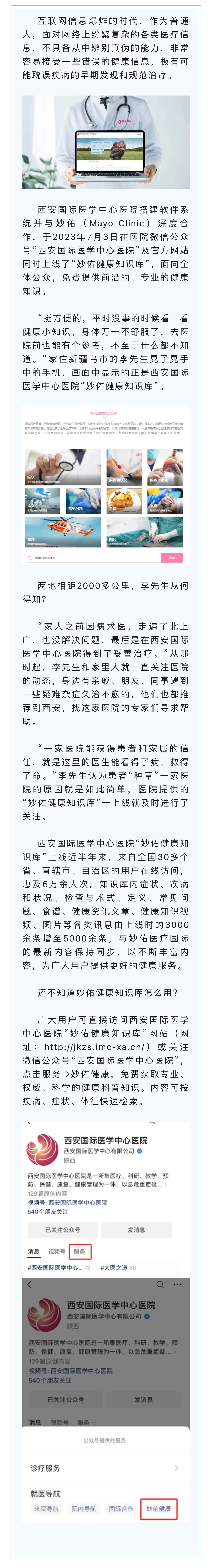 24小時(shí)掌中健康管家——西安國際醫(yī)學(xué)中心醫(yī)院“妙佑健康知識庫”