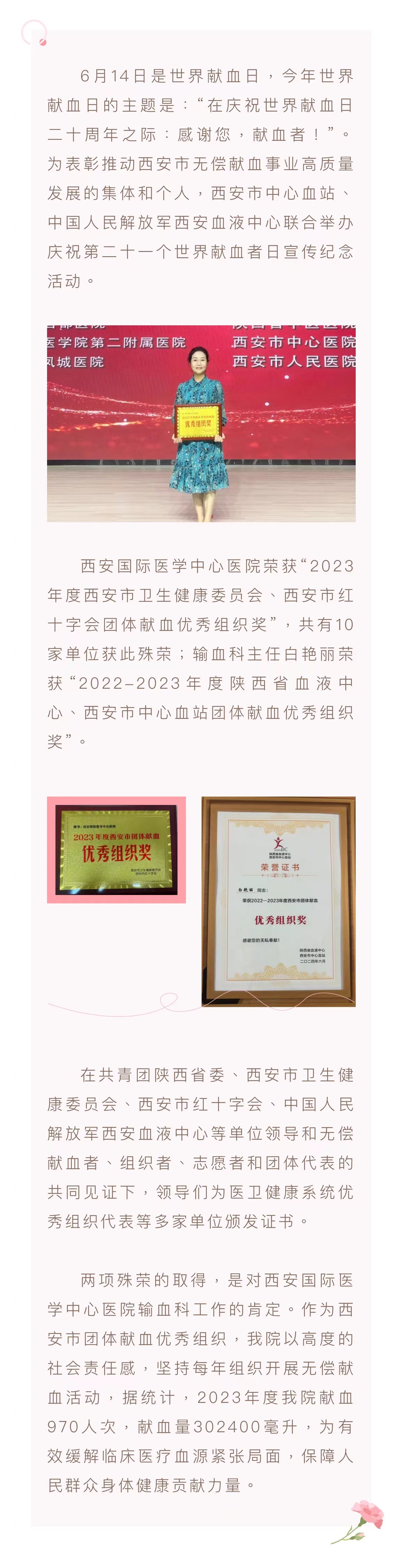 感謝您,獻血者!我院再獲兩項殊榮