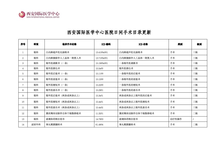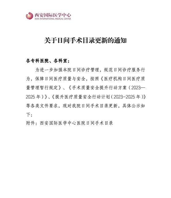 日間手術(shù)目錄更新